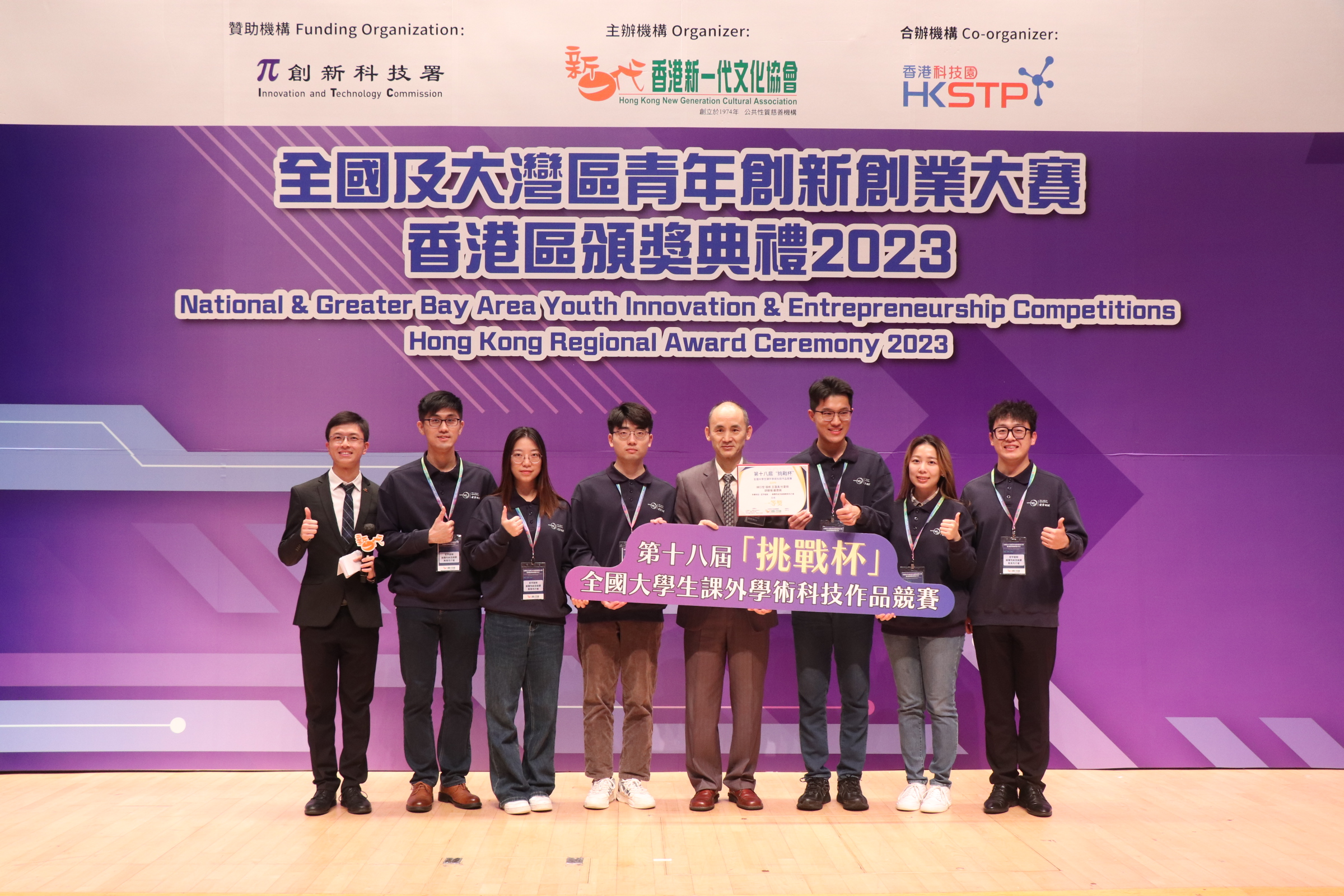 全國及大灣區青年創新創業大賽 香港區頒獎典禮2023 Post date December 8, 2023 563 https://www.facebook.com/media/set/?vanity=HKNGCAIEC&set=a.741794151315905 主禮嘉賓大合照 香港新一代文化協會總幹事 蘇祉祺博士, BBS, MH, JP致歡迎辭 所有得獎者及嘉賓大合照 主禮嘉賓劉懋洲先生頒發「挑戰杯」獎項 主禮嘉賓張曼莉女士, JP頒發「互聯網+」獎項 主禮嘉賓邱達根先生頒發「創青春」獎項 主禮嘉賓粘清澤先生頒發「京港青創杯」獎項 ← 中國國際大學生創新大賽(2023)總決賽花絮 → 第10屆香港大學生創新及創業大賽頒獎禮花絮